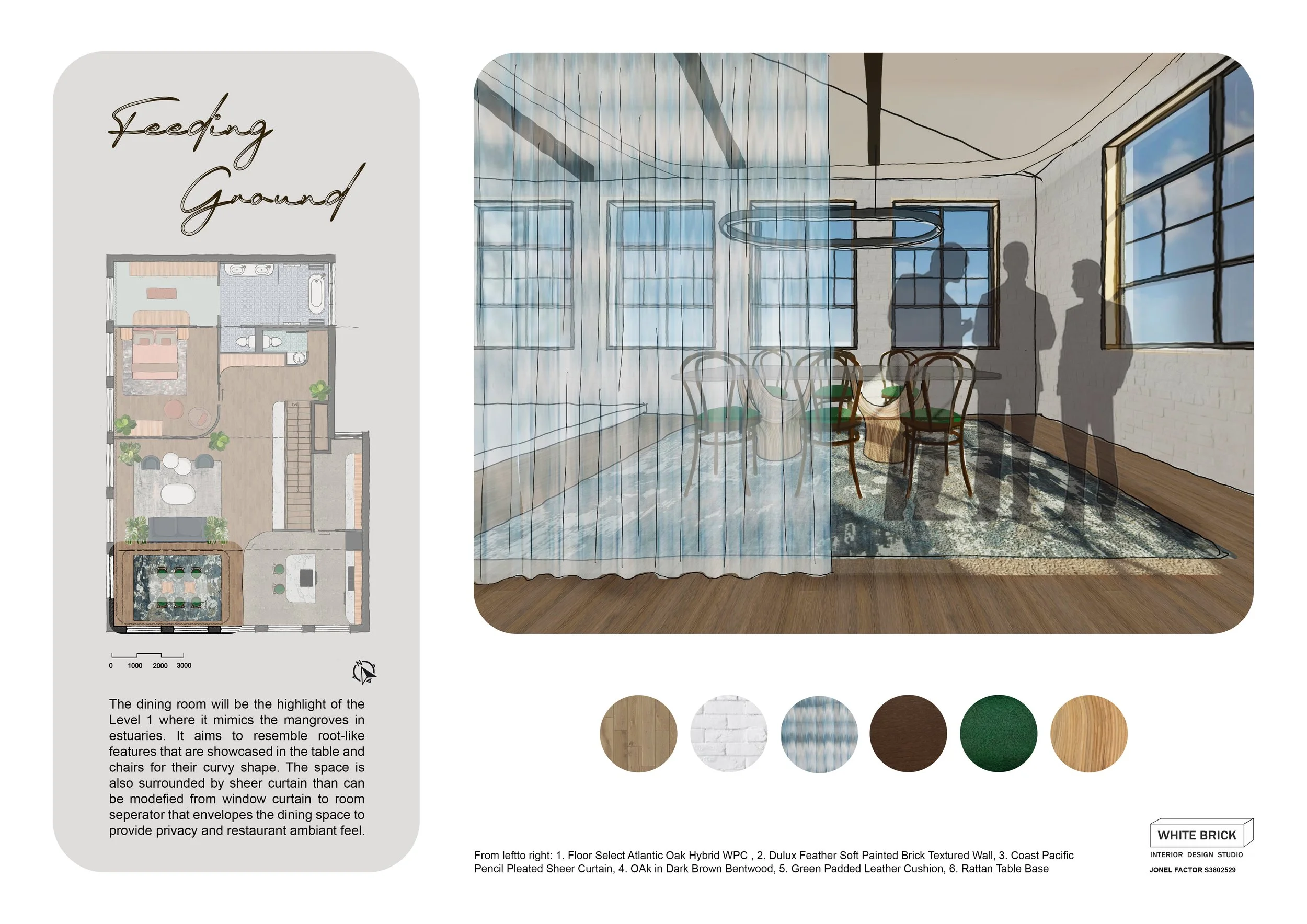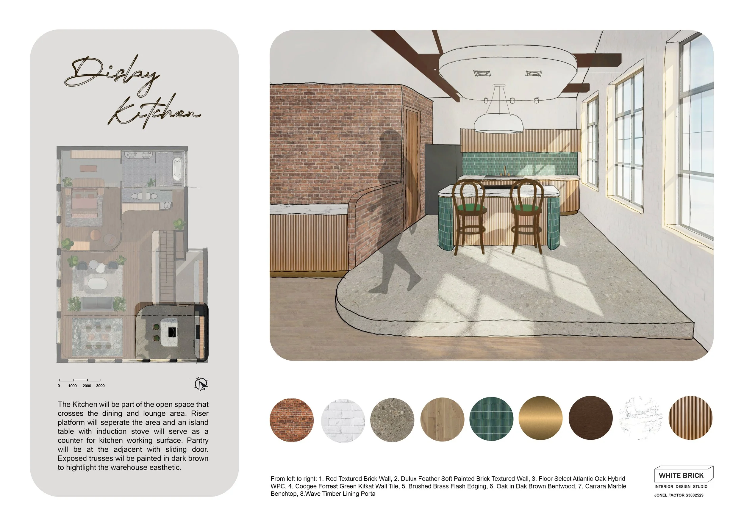 A capstone project that presents a warehouse apartment in Fitzroy designed for a young family. The fondness for greenery inspired the design that highlights the estuary, imparting an organic aesthetic to the warehouse setting.